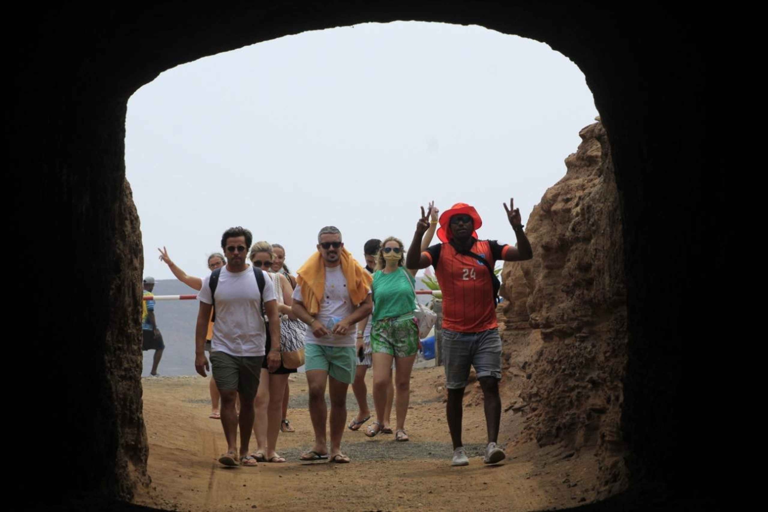 استكشف الجمال الطبيعي والسحر النابض بالحياة لجزيرة سال في هذه المغامرة التي تستغرق يوماً كاملاً في مجموعة صغيرة بقيادة مرشد محلي معتمد. استمتع بمشاهدة العين الزرقاء المتوهجة، واسبح في المياه الغنية بالمعادن في فوهة بركانية خامدة، وامشِ بين صغار أسماك القرش الليمونية في بيئتها الطبيعية. استكشف المدن الملونة مثل بالميرا وإسبارجوس الغنية بتاريخ الرأس الأخضر وفن الشارع النابض بالحياة. اشعر بإيقاع مورابيسا وأنت تتذوّق طعم الموربيزا بينما تتذوّق طعم الجوجو المحلي وتستمتع بغداء اختياري في أجواء تقليدية. سواء كنت تبحث عن المغامرة أو الثقافة أو الاسترخاء الخالص، فإن هذه التجربة تدعوك لرؤية الجزيرة وتذوقها والشعور بها من خلال عيون من يعيشها. من السراب الصحراوي إلى العجائب البركانية، تم تصميم كل محطة لتترك لك ذكريات لا تُنسى. الأماكن محدودة - احجز الآن واكتشف سال مع شخص يعيشها حقاً! أبرز معالم الجولة ✔️ الاستقبال من سانتا ماريا ابدأ يومك باصطحابك من فندقك في سانتا ماريا. اركب بشكل مريح في سيارة دفع رباعي أو حافلة صغيرة مع مرشدك المحلي وزملائك المستكشفين. ✔️ شاطئ كايت بيتش - شاهد رقصة السماء شاهد عشرات الطائرات الورقية الملونة التي تحلق فوق المياه الفيروزية. محطة تصوير مفعمة بالحيوية والنسيم يعشقها المسافرون. ✔️ خليج مورديرا - منظر ساحلي خلاب استمتع بالمناظر البانورامية لمونتي لياو - الجبل الذي يتخذ شكل الأسد والذي يُعد أحد المعالم الطبيعية الشهيرة في سال. ✔️Espargos - قلب الجزيرة تجوّل في عاصمة سال مع فنون الشوارع والأسواق النابضة بالحياة والأجواء الكريولية الأصيلة. زيارة اختيارية لوجهة نظر مونتي كورال أو مشروع مجتمعي محلي. ✔️Terra بوا - السراب الصحراوي شاهد *السراب* الشهير، حيث تبدو الصحراء متلألئة مثل الماء. وهم طبيعي رائع. ✔️Buracona والعين الزرقاء تعجّب من هذه البحيرة البركانية، حيث يخلق ضوء الشمس 'عيناً' متوهجة في الصخر. يمكنك الاستمتاع بالسباحة في البركة الطبيعية المحاطة بتشكيلات الحمم البركانية. ✔️Palmeira القرية - تذوّق الحياة المحلية تجوّل في قرية الصيد الهادئة هذه، وتحدّث مع السكان المحليين واستمتع بإيقاع الحياة البطيء على الجزيرة. غداء اختياري هنا، أو في إسبارجوس أو بيدرا دي لومي (غير مشمول). ✔️Pedra دي لومي - طفو في فوهة البركان المالح داخل بركان خامد، يمكنك أن تطفو في بحيرة الملح الشافية - كثيفة للغاية لدرجة أنك ستشعر بانعدام الوزن. يقول السكان المحليون إن ذلك يجعلك تبدو أصغر بـ 10 سنوات! ✔️Shark باي - المشي مع أسماك قرش الليمون الصغيرة ادخل إلى المياه التي يصل عمقها إلى الكاحل وشاهد صغار أسماك قرش الليمون تنزلق حولك بأمان. لقاء هادئ لا يُنسى مع الحياة البرية. ✔️Souvenir التوقف وتذوق الجروج (اختياري) بناءً على الوقت، استمتع بالتوقف لتذوق مشروب الروم في الرأس الأخضر وتصفح الهدايا التذكارية المصنوعة يدوياً من قِبل الحرفيين المحليين. ✔️Return إلى الفندق بقلب ممتلئ وذكريات تدوم إلى الأبد. استمتع بتجربة سال الحقيقية مع الراحة والأصالة والتواصل - بإرشاد شخص يعتبر هذه الجزيرة موطناً له. تتم هذه الجولة كل يوم بما في ذلك أيام الأحد والعطلات. لا تكتفِ بزيارة سال - بل اختبرها. احجز الآن - الأماكن محدودة!Includes