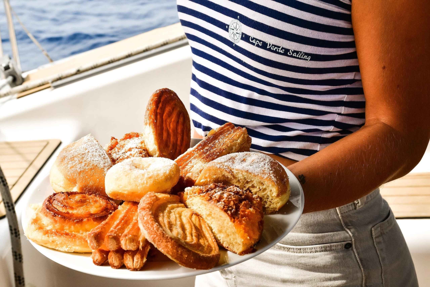 Gehe an Bord unserer eleganten Segelyacht für ein halbtägiges Abenteuer entlang der atemberaubenden Küstenlinie der Insel Sal. Deine Reise beginnt mit einer herzlichen Begrüßung durch unsere freundliche Crew, die während der gesamten Fahrt für deinen Komfort und deine Sicherheit sorgen wird. Während wir in See stechen, genießt du einen atemberaubenden Blick auf das türkisfarbene Wasser und die landschaftliche Schönheit der Insel. Spüre die Meeresbrise und entspanne dich an Deck, während die Yacht durch die ruhige See gleitet. In der Mitte der Fahrt ankern wir an einem ruhigen Ort, wo du die Möglichkeit hast, im kristallklaren Wasser zu schwimmen oder zu schnorcheln. Für alle, die die Unterwasserwelt erkunden wollen, wird eine Schnorchelausrüstung bereitgestellt. Leichte Snacks und erfrischende Getränke werden an Bord serviert und sorgen für eine entspannte Atmosphäre. Ob du nun die Sonne genießt oder einfach nur die friedliche Umgebung, bei diesem Erlebnis geht es darum, die Seele baumeln zu lassen und mit der Natur in Kontakt zu kommen. Dieser halbtägige Segeltörn ist perfekt für Paare, Familien oder kleine Gruppen, die ein ruhiges und intimes Meeresabenteuer suchen. Buche jetzt und lass die Wellen deine Sorgen wegtragen!Includes