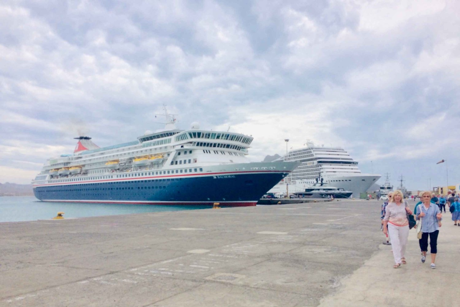 Reúnete con nuestro equipo en la entrada del puerto de Mindelo (a solo 3-5 minutos a pie de tu barco). Nuestro personal de GREEN LINE TOURS te estará esperando, fácilmente reconocible por sus camisetas de la empresa y un cartel con tu nombre. Estaremos allí para darte la bienvenida y ayudarte. Conoce a tu guía local y dirígete al antiguo fuerte de la isla, Fortim del Rei, donde tendrás una vista fenomenal de la ciudad costera de Mindelo y la playa de Laginha. Da un paseo por la ciudad, donde verás y escucharás sobre la historia y la cultura de las islas. Visita el Centro Cultural para ver el talento actual en exhibición y los bulliciosos mercados* de Mindelo (cerrados los domingos). Haz un recorrido panorámico hasta Monte Verde, el pico más alto de Sao Vicente, a 774 m de altura. Aquí verás el lugar más verde y fértil de la isla, ya que la mayor parte es arcillosa. Tendrás la oportunidad de hacer fotos maravillosas de las impresionantes vistas panorámicas de la ciudad y las playas que bordean la isla. Dirígete a la ciudad de Salamansa, un encantador pueblo de pescadores que creemos que muchos han olvidado. La gente siempre está feliz de recibir a los visitantes. También hay una hermosa iglesia en una pequeña colina en la playa, ¡perfecta para una foto! ¡No hay mal lugar para tomar fotos y crear recuerdos aquí! Visita la playa de Baia das Gatas. Aquí puedes darte un chapuzón en la laguna de aguas cristalinas. Conduce por la carretera costera más bonita de Baia Norte, una pequeña comunidad, la playa aquí está llena de majestuosas dunas de arena blanca. Calhau es un pequeño pueblo de pescadores y agricultores, donde también se encuentra el Vulcao Viana, un volcán extinto. Nos dirigiremos al valle de Calhau, donde veremos vegetación, animales, pozos de agua, molinos de viento y agricultura tradicional, además de viejos molinos de viento de hierro. Al final de nuestra excursión, volveremos a Porto Grande.Includes