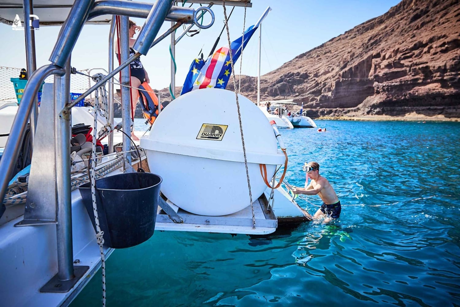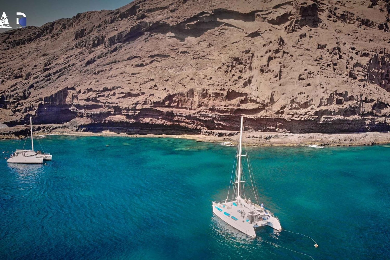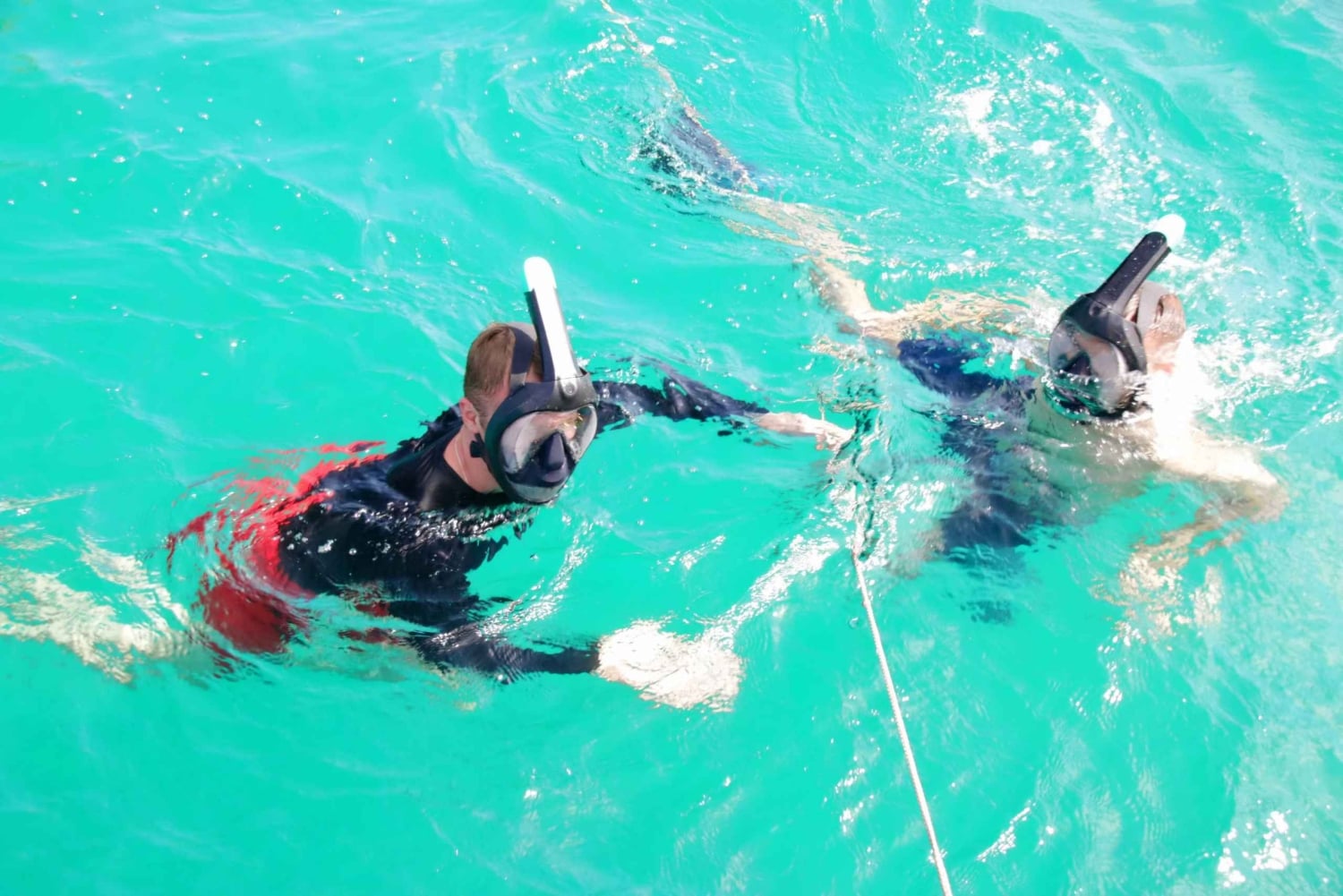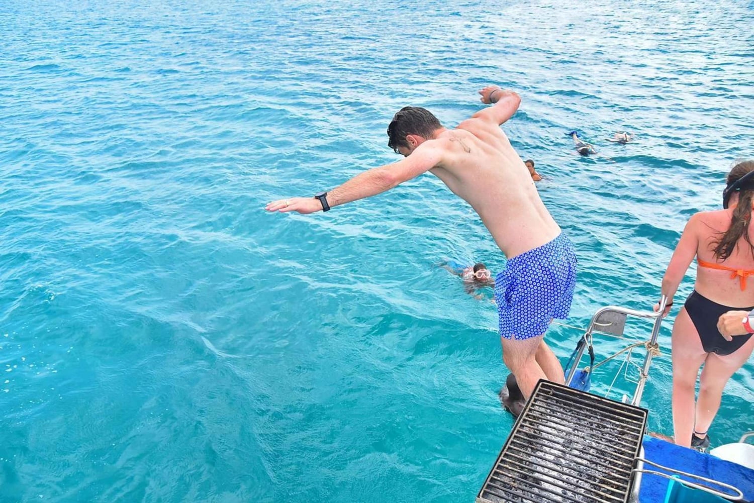 Embárcate en un recorrido en catamarán por la impresionante costa de Sal, Cabo Verde. Tu excursión comienza con la recogida en tu hotel y un corto trayecto por la isla hasta el puerto de Palmeira. Allí te subirás a bordo del Makaira, un catamarán espacioso y cómodo, y disfrutarás de un ambiente relajado y agradable mientras te deslizas por las aguas cristalinas del Atlántico.