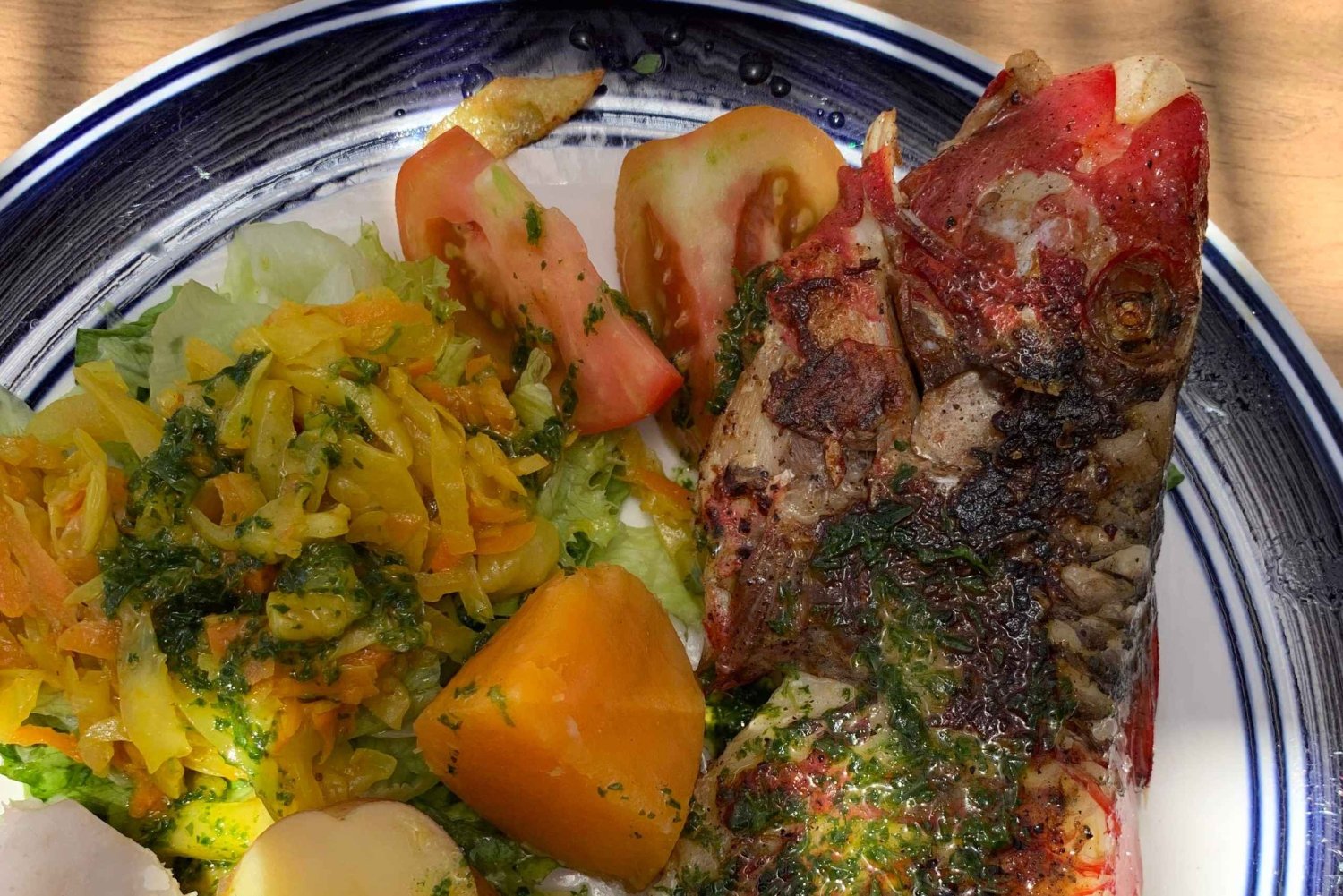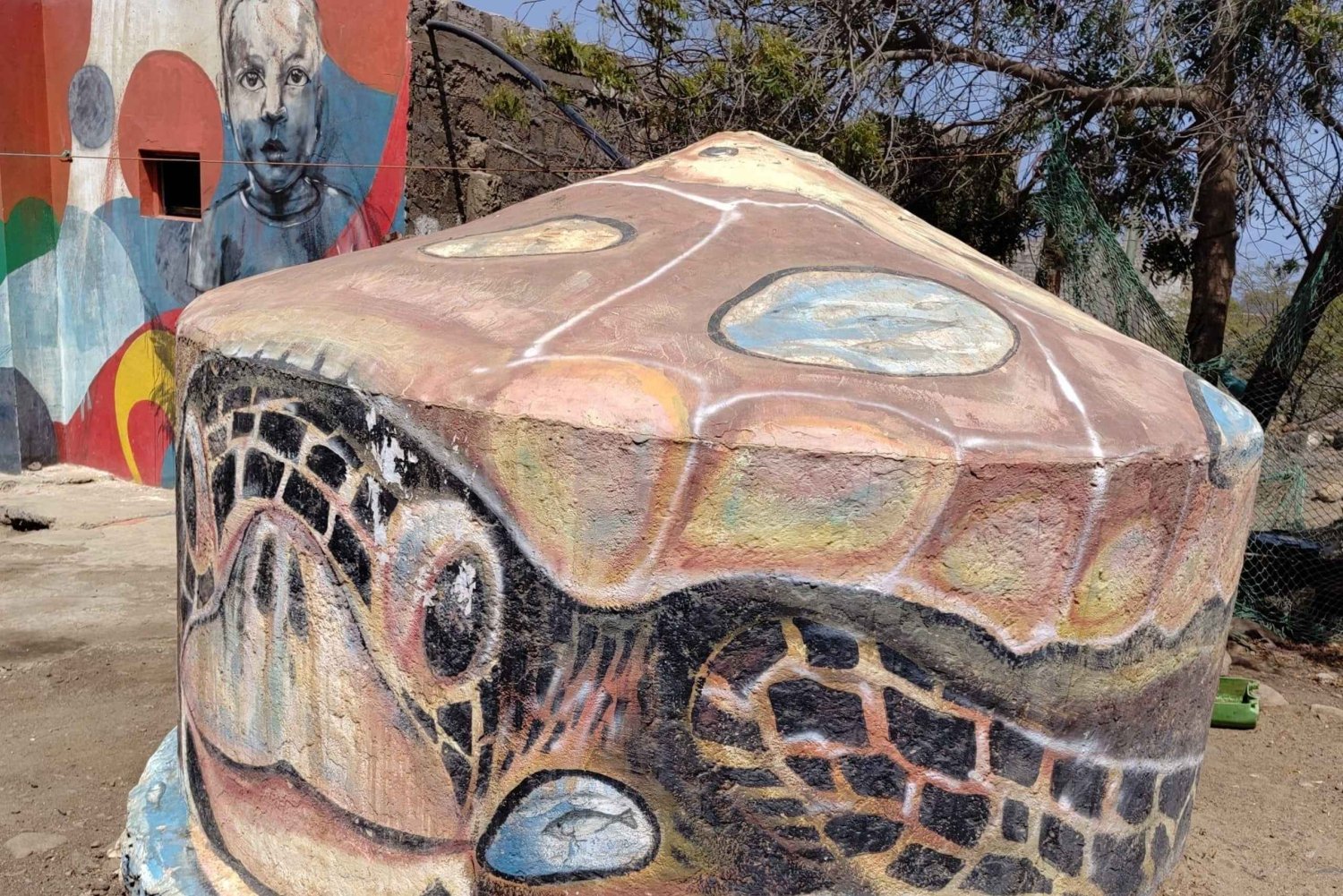 On this full-day tour, we'll discover the most beautiful places on the island of São Vicente, drive to the highest mountain, Monte Verde, make a short detour to the venue of the largest music festival in Cabo Verde, Baía das Gatas, and have lunch at a beautiful beach restaurant in the fishing village of Salamansa. Then we'll head to Norte de Baía, where we'll admire the results of a graffiti festival. We'll take the scenic road along the northwest coast, stopping at one of the sand dunes blown in from the Sahara before heading to Calhau. After a stop at the studio of an artist who produces jewelry from the uninhabited island of Santa Luzia, we'll drive through the fertile, green valley in the middle of the island back to Mindelo. There, we'll check out the coolest sights and, after 2 hours, we'll hit the café at the CNAD Art Museum, where a musician will be waiting to wow us with all 6 rhythms of Cabo Verde. After 8 hours, we'll reach the city beach of Laginha, where you can enjoy the sunset.Includes
