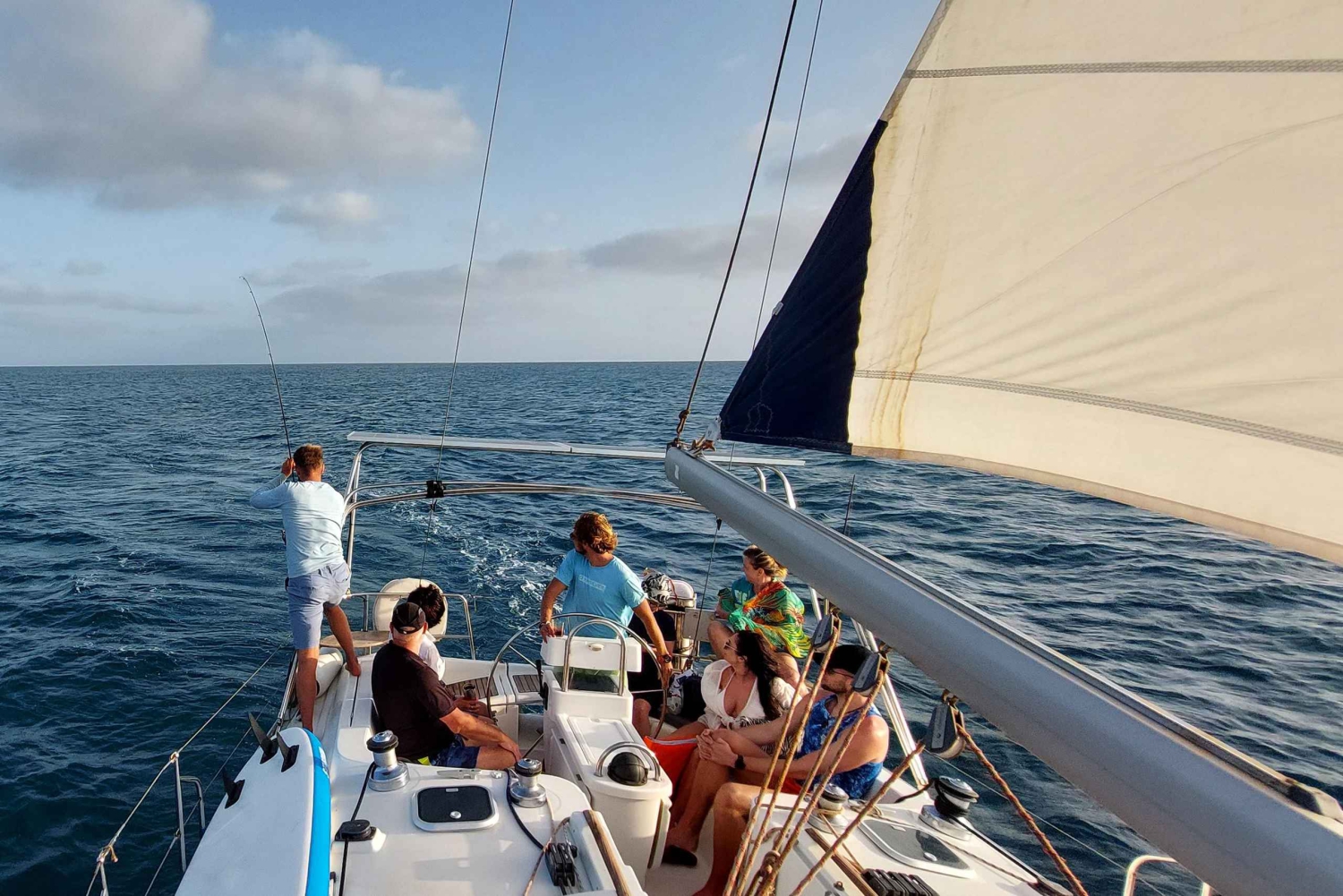 Mene purjehtimaan kokeneen nuoren tiimin kanssa, joka puhuu puolaa, englantia ja saksaa. Näe saari toiselta puolelta, snorklaa ja tarkkaile vedenalaista elämää, lentäviä kaloja, kausittain valaita tai delfiinejä. Maista paikallisia tuotteita, välipaloja, juomia ja parasta tonnikalatartaria ikinä tai catchupaa. Ryhmä on pieni, enintään 8, jotta voit tuntea olosi mukavaksi tai varata sen omaksi. Matkan aikana näet saaren länsiosan. Tuona aikana kerromme sinulle purjehduksen perusteet, ja lisäksi sinulla on mahdollisuus ottaa ruori ja olla kapteeni! Matka alkaa rauhallisesta lahdesta nimeltä Ponta Leme, Angulo Beachilta ja päättyy samaan paikkaan.Includes
