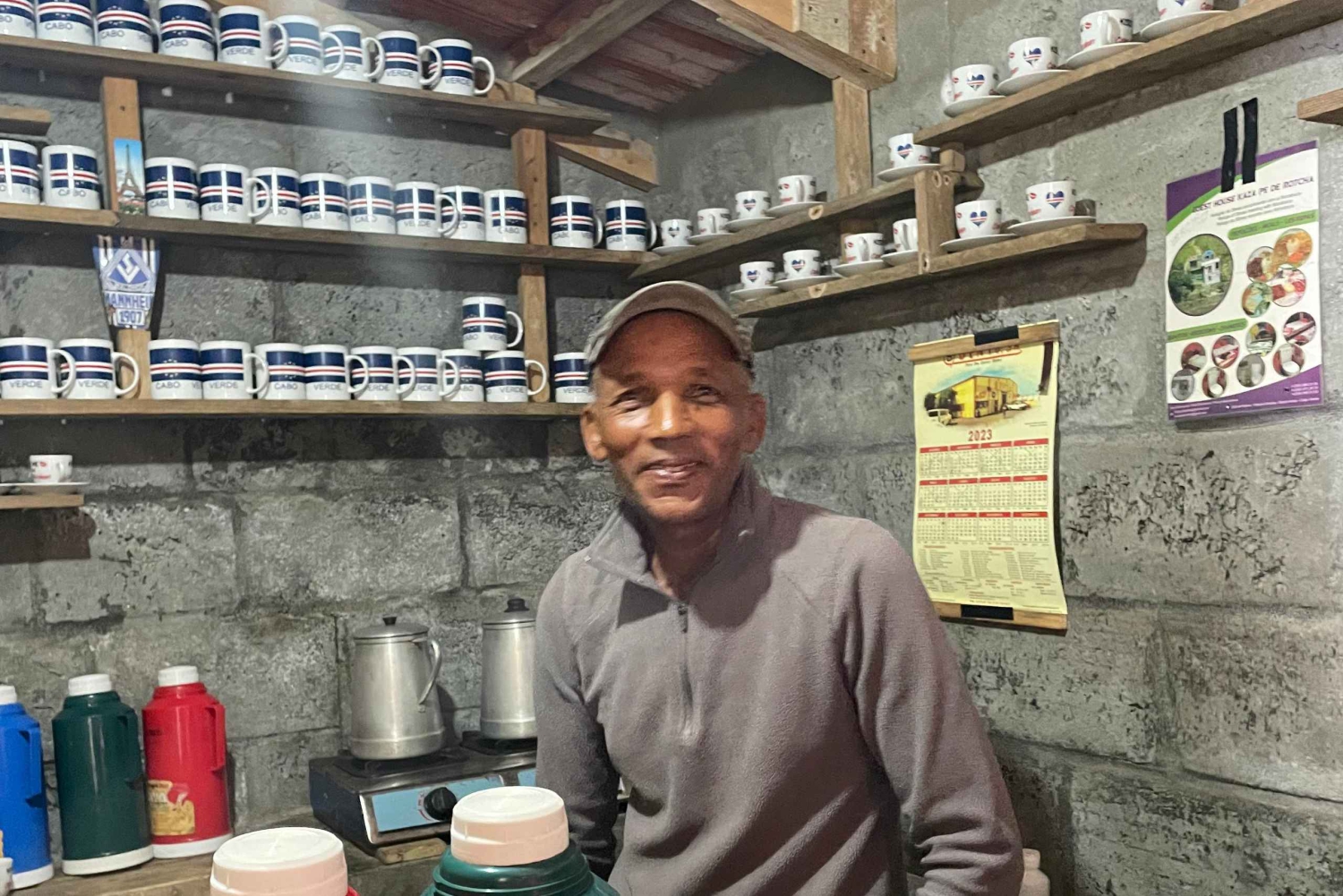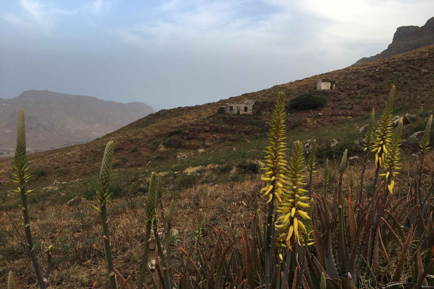 São Vicente è tipicamente secca e argillosa, tuttavia, il Monte Verde è uno dei luoghi più verdi dell'isola. Raggiungi la base del Monte Verde in auto e fai un'escursione lungo il sentiero sul fianco della montagna. Lungo la strada troverai piante endemiche, contadini, bestiame, vecchie case abbandonate. Al vertice ci fermeremo alla Tea House per gustare una tazza di tè o caffè coltivato localmente, o assaggiare il liquore al tè, mentre ammiriamo le viste spettacolari dell'isola: Mindelo e le spiagge costiere sono meravigliose dall'alto! In una giornata limpida vedrai le isole di Santo Antão, São Nicolau, Santa Luzia, Ilhéu Raso e Branco. L'escursione dura in genere fino a 2 ore solo andata, potremmo tornare sulla strada in discesa, quindi essere prelevati e tornare all'alloggio.Includes