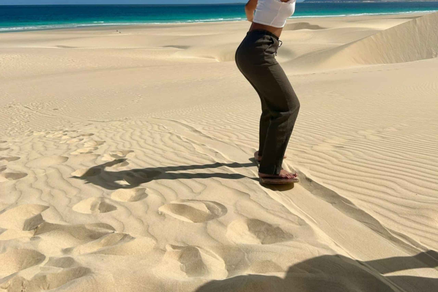サンタモニカのノーストレスツアー 海岸線、砂丘、夢のようなビーチ、そして純粋なリラクゼーションをお楽しみください このツアーは、ストレスなく楽しみながら探索するためのものです。 ボア・ヴィスタ島の素晴らしい風景、隠れたお気に入りのスポット、そして最高の魅力を発見してください。 ️ モロ・ダレイア – 砂丘とパノラマビューをお楽しみください まずは見どころからスタートします。プライア・デ・チャベスの息をのむような景色と、印象的な砂丘の風景をご覧ください。 砂丘を走るエキサイティングなドライブをお楽しみください。ツアーの思い出に残るスタートとなるでしょう。 ご希望の方は、サンドソリを楽しむこともできます。 タートル湾とシャーク湾へ 次に、絵に描いたような海岸線に沿ってタートルベイへ向かいます。運が良ければ、海の住人たちを見つけることができるかもしれません。 シャークベイにも短時間立ち寄ります。もしかしたら、シャイな海の生き物に出会えるかもしれません! (野生動物の目撃は保証されませんので、ご了承ください。) ️ヴァランディーニャビーチ – 洞窟と写真の楽園 ボア・ヴィスタ島の本当の隠れた宝石です! 野生のヴァランディーニャビーチでは、素晴らしい写真や驚くような景色を撮るのに最適な、見事な石灰岩の洞窟とドラマチックな岩場の海岸線を探索してください。 島でお気に入りのスポットの一つです! サンタモニカビーチでリラックスしてお楽しみください ツアーの最後は、有名なサンタモニカビーチを訪れます。12kmにわたる手つかずの砂浜とターコイズブルーの海、そして至福の静けさをお楽しみください。 ビーチバーで冷たい飲み物を楽しみ、お好きな方は海で泳ぐこともできます。 水着をお忘れなく! シュノーケリング用のマスクもご用意しております。天候状況に応じて、お気軽にご利用ください(ただし、シュノーケリングができない場合もございますので、ご了承ください)。Includes