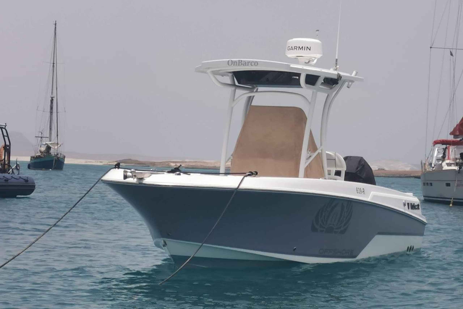 Sett seil på en privat båttur langs den fantastiske kysten av Boavista, Kapp Verde. Ombord på den elegante og kraftige Wellcraft 222 vil du og gruppen din være de eneste gjestene om bord – noe som garanterer en virkelig personlig og eksklusiv opplevelse på åpent hav. Dette er ikke bare en båttur – det er en reise inn i hjertet av Boavistas naturlige skjønnhet, hvor det krystallklare, varme vannet i Atlanterhavet avslører skjulte viker, dramatiske klipper og noen av øyas mest spektakulære strender, som kun er tilgjengelige fra sjøsiden. Med total frihet og privatliv kan du slappe av, utforske eller nyte solen akkurat slik du ønsker. Wellcraft 222 tilbyr både komfort og stil, utstyrt med toalett om bord og god plass til å strekke seg ut og nyte turen. Din erfarne kaptein vil guide deg til de beste stedene langs kysten, inkludert perfekte steder for snorkling – hvor du kan dykke ned i det turkisblå vannet og oppdage det rike undervannslivet like under overflaten. Enten du svømmer i bortgjemte bukter, slapper av på dekk med panoramautsikt eller utforsker uberørte strender, er denne turen en feiring av havet, designet spesielt for deg.Includes