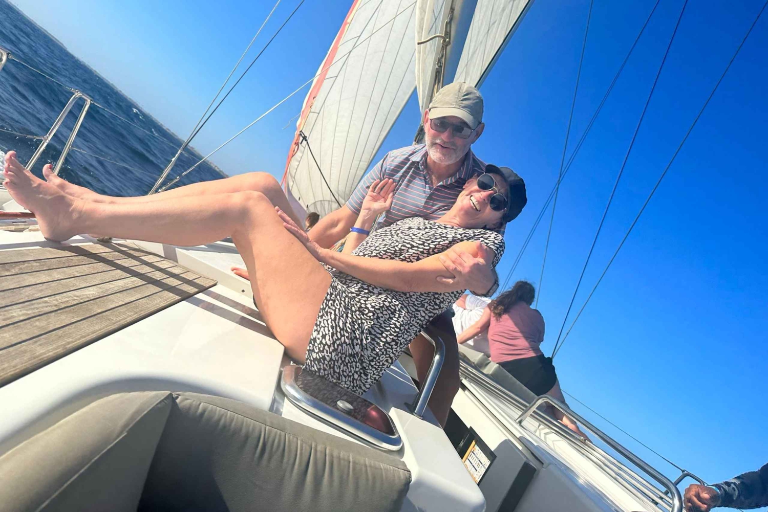 Forestill deg dette: en 6 timer lang reise med avgang kl. 10 om morgenen, der hvert øyeblikk er fylt med spenning og glede. Slukk tørsten med et utvalg av forfriskende drikkevarer, inkludert vann, juice, kaffe, te, øl og vin, alt servert i en åpen bar. Og vær ikke redd, sulten har ikke en sjanse mot våre småretter, som sørger for at du får i deg nok energi under hele reisen og lunsjen. Men moroa stopper ikke der! Dykk ned i det krystallklare vannet for å snorkle, med førsteklasses utstyr om bord. Hold øynene åpne for et tilfeldig møte med de majestetiske skapningene i dypet - fra lekne delfiner til praktfulle hvaler, grasiøse skilpadder og til og med svevende sjøfugler - hvert øyeblikk lover et spennende glimt av underverkene i det marine livet (det er ikke sikkert vi alltid er i nærheten av delfiner, hvaler og skilpadder). *Avreise kan enten være fra Bikini Beach-piren eller Palmeira. *Opphenting vil alltid være på hovedstedet, hvis det blir endringer på grunn av været, vil vi kontakte deg 2 dager før turen. *Vennligst møt opp på møtestedet 20 minutter før avgangstid. *Transport er ikke inkludert*. Vi tilbyr ikke henting på hotell eller i leilighet for denne utflukten, men det er enkelt å komme seg til møtestedet, og det finnes mange drosjer lett tilgjengelig. Så hvorfor vente? Bli med oss og oppdag gleden ved å utforske havet - vi garanterer at du blir hektet fra det øyeblikket du går om bord!Includes
