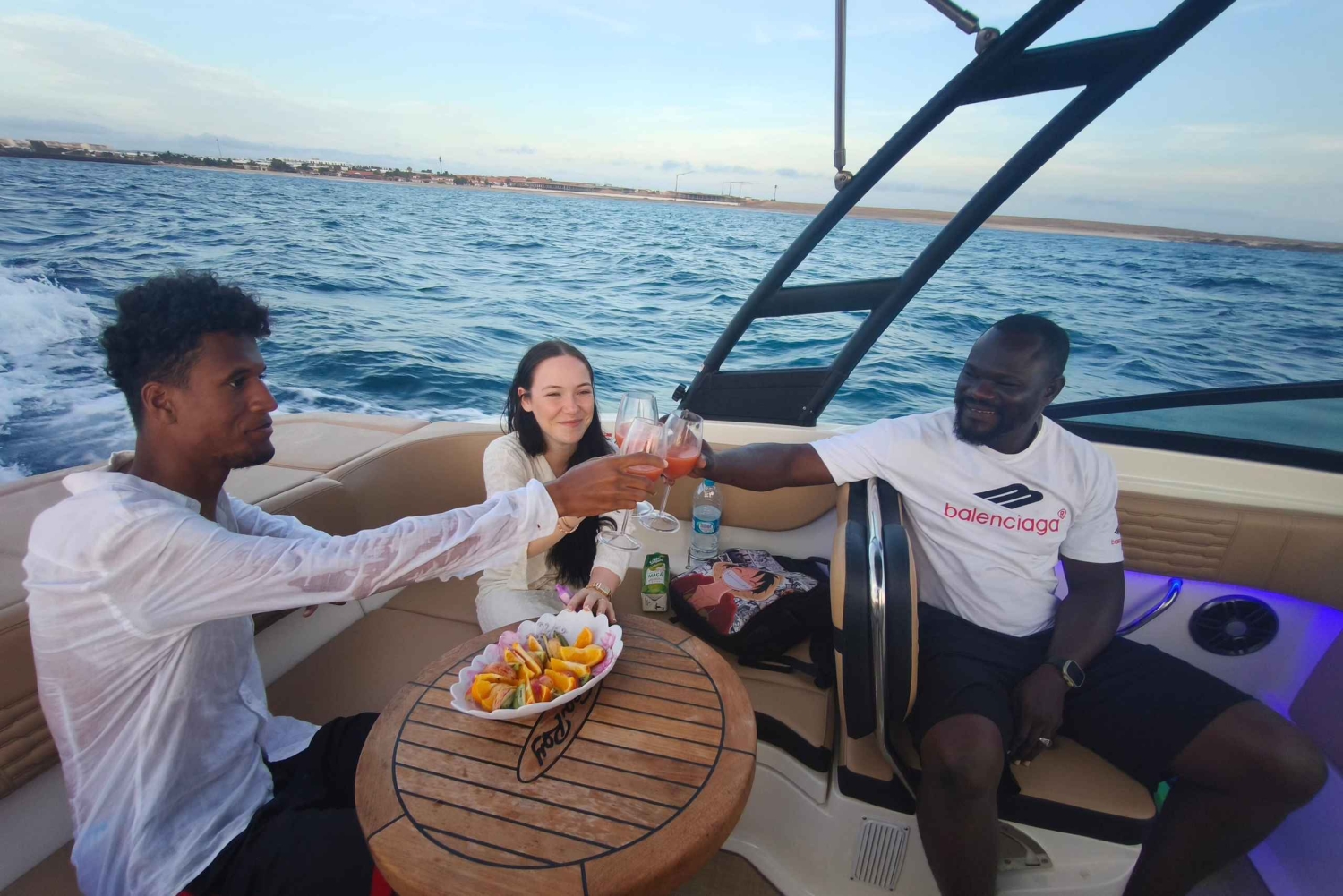 Wybierz jeden z naszych rejsów i aktywności wodnych na wyspie Sal na pokładzie naszej nowej, ekskluzywnej i JEDYNEJ łodzi motorowej Sae Ray 210SPX. Na łodzi jest wieża do sportów wodnych! Jesteśmy też JEDYNYM statkiem na wyspie, który oferuje tak kameralne rejsy dla maksymalnie sześciu osób, zapewniając wyjątkowe i wyjątkowe wrażenia VIP! Wybierz jeden z naszych wyjątkowych rejsów: 1. Magiczny rejs o zachodzie słońca – tylko u nas! Ciesz się luksusowym wieczorem z muzyką, szampanem, owocami i oceanem Rejs rozpoczyna się wzdłuż południowego, południowo-zachodniego lub zachodniego wybrzeża, w zależności od warunków na oceanie. Ten rejs jest cichy, kameralny i, jeśli wolisz, romantyczny, więc wypływa z części wyspy, gdzie natura pozwala na tak spokojny rejs. START jest między 16:15 a 17:15, w zależności od sezonu. 2. Półdniowy rejs poranny lub popołudniowy Wybierz półdniowy rejs Premium Relax wzdłuż południowego i południowo-zachodniego wybrzeża Sal, z nieograniczoną ilością napojów, owoców, przekąsek, muzyką, relaksem, pływanie i snorkelingiem. Podczas rejsu zobaczysz wyjątkowe miejsca: cmentarz muszli, rezerwat przyrody widoczny z oceanu; najpiękniejszą plażę na Ponta Preta; plażę Bikini; Czarny Brzeg; a jeśli lubisz snorkeling, zatopiony statek lub podwodny posąg Jezusa – to tylko kilka z nich. START: 10:00 i 14:00 3. Całodzienny rejs poranny z mini lunchem Jeśli masz ochotę na całodzienną przygodę, wybierz się na rejs wzdłuż południowego i zachodniego wybrzeża Sal, z przystankami na pływanie, snorkeling i program rozrywkowy. Ten rejs zabierze Cię do wszystkich miejsc objętych półdniowym rejsem, a także do podnóża Gór Lwich i Zatoki Murdeira, gdzie możesz nurkować i podziwiać piękno oceanu. Oprócz nieograniczonej ilości markowych napojów alkoholowych i bezalkoholowych oraz kawy, oferujemy przekąski, owoce i zimny lunch przygotowany ze świeżych, lokalnych produktów. Będziesz mieć też okazję samemu poprowadzić łódź pod okiem kapitana! Podczas tego wyjątkowego rejsu możesz przejechać się bananem lub zjeść pączka na środku oceanu. Mamy też darmową opcję: jeśli przywieziesz narty wodne lub wakeboard, zamiast pączka lub bajgla, możemy Cię holować na Twoim ulubionym sprzęcie bez dodatkowych opłat! Start: 10:00 Wszystkie rejsy są dostępne dla grup połączonych lub prywatnych. W grupie może być maksymalnie 6 osób! Jeśli wybierzesz rejs PRV, możesz również pływać solo, jeśli chcesz, lub z maksymalnie 6 osobami. Wszystkie nasze rejsy są odpowiednie dla osób w każdym wieku, z wyjątkiem niemowląt i dzieci do 3 lat. To od Ciebie zależy, czy Twój rejs będzie spokojny i relaksujący, czy też szalony i pełen zabawy. Na naszych rejsach, oprócz satysfakcji naszych gości, priorytetem jest ich bezpieczeństwo i lokalna przyroda. Dlatego żeglujemy tylko do legalnie dozwolonych obszarów, które nie narażają zwierząt na stres ani niebezpieczeństwo. Używamy naczyń wielokrotnego użytku, żeby nie zaśmiecać wyspy. A że łódź jest nowa i wyprodukowana na rynek UE, to znaczy, że spełnia wszystkie rygorystyczne normy środowiskowe.Includes