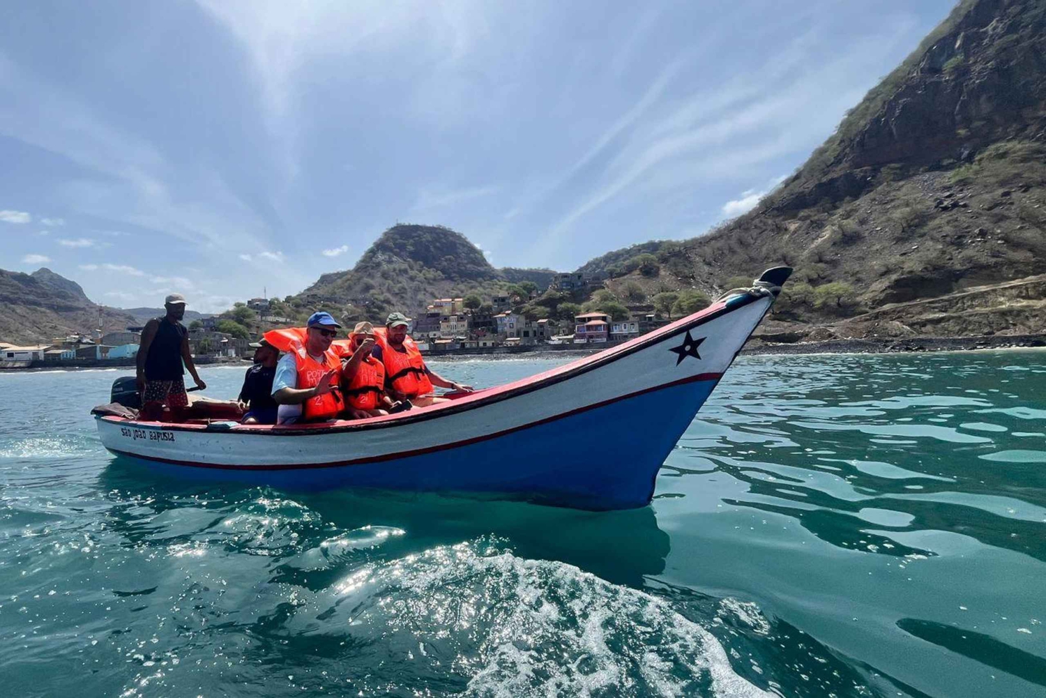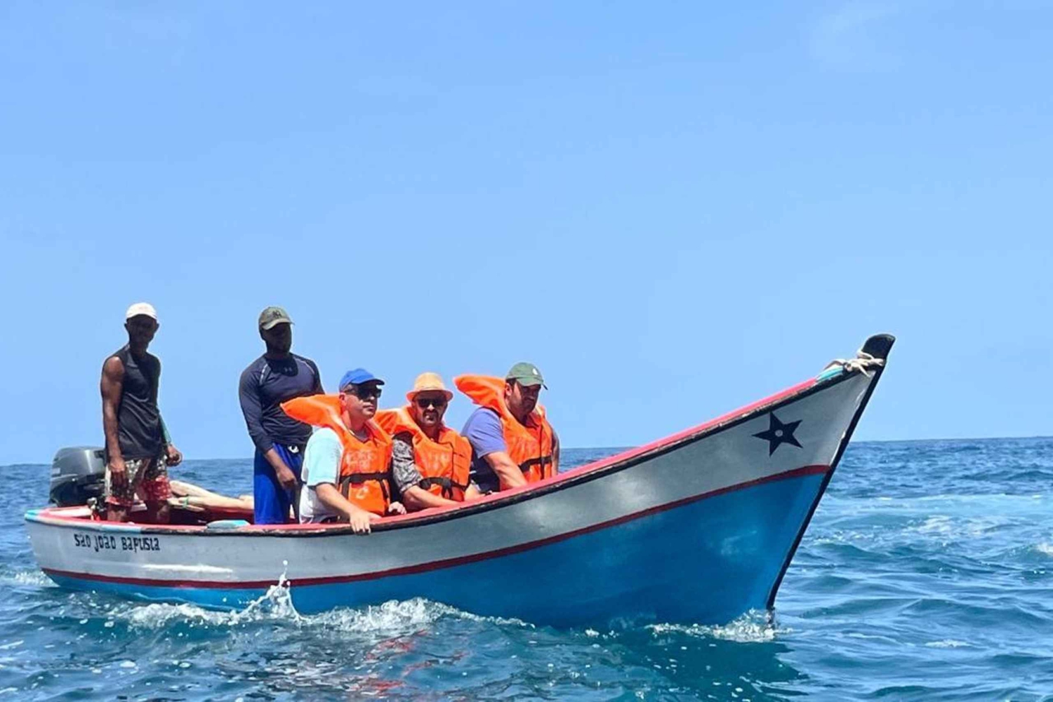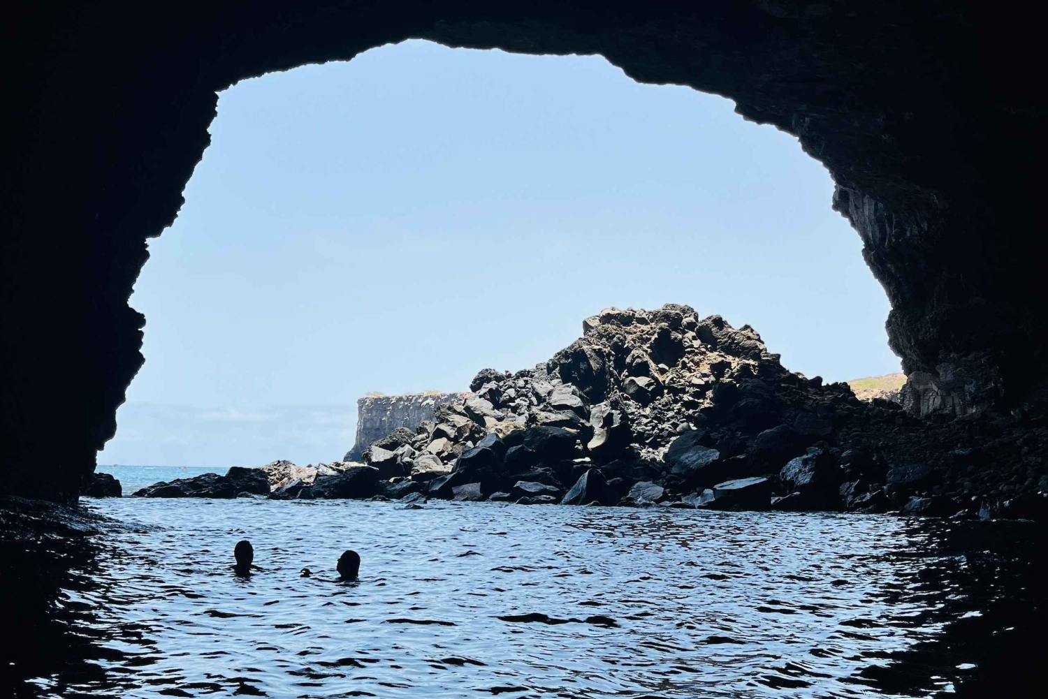 Поездка на лодке к пещере Агуас Белас + барбекю на пляже. Встреча утром у места вашего проживания, отправление на север острова в небольшую рыбацкую деревню Порту-Рибейра-да-Барка, оттуда вы сядете на красочную традиционную рыбацкую лодку, чтобы добраться до знаменитой пещеры. Расположенная в 3 км от деревни пещера является волшебным местом для открытия. Во время поездки у вас будет возможность почувствовать морской бриз, шум волн, оценить красивые пейзажи вокруг, а иногда можно увидеть черепах. У вас также будет возможность войти в пещеру и поплавать внутри нее. После посещения пещеры вы остановитесь на небольшом райском пляже с черным песком, чтобы искупаться и приготовить барбекю.Includes