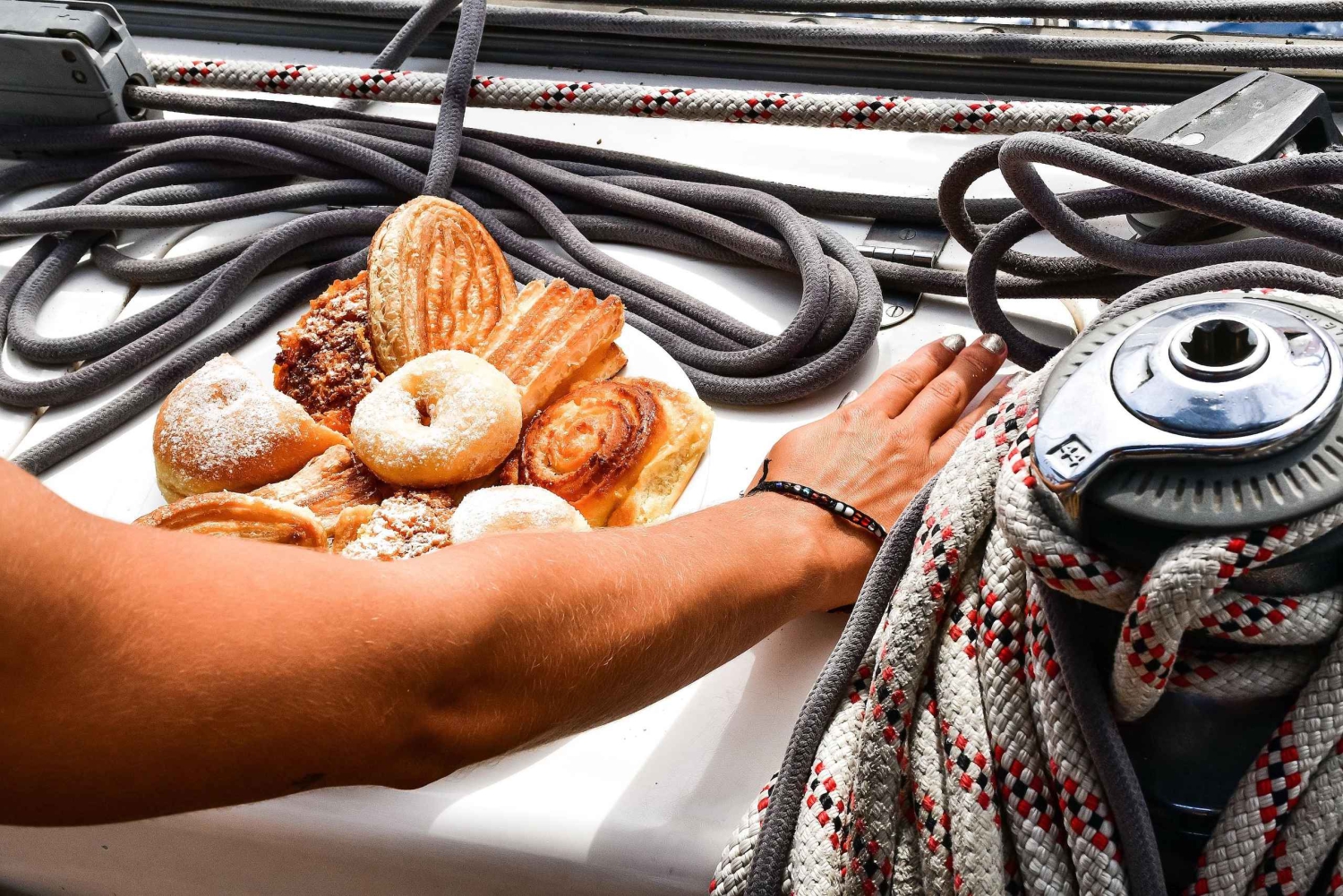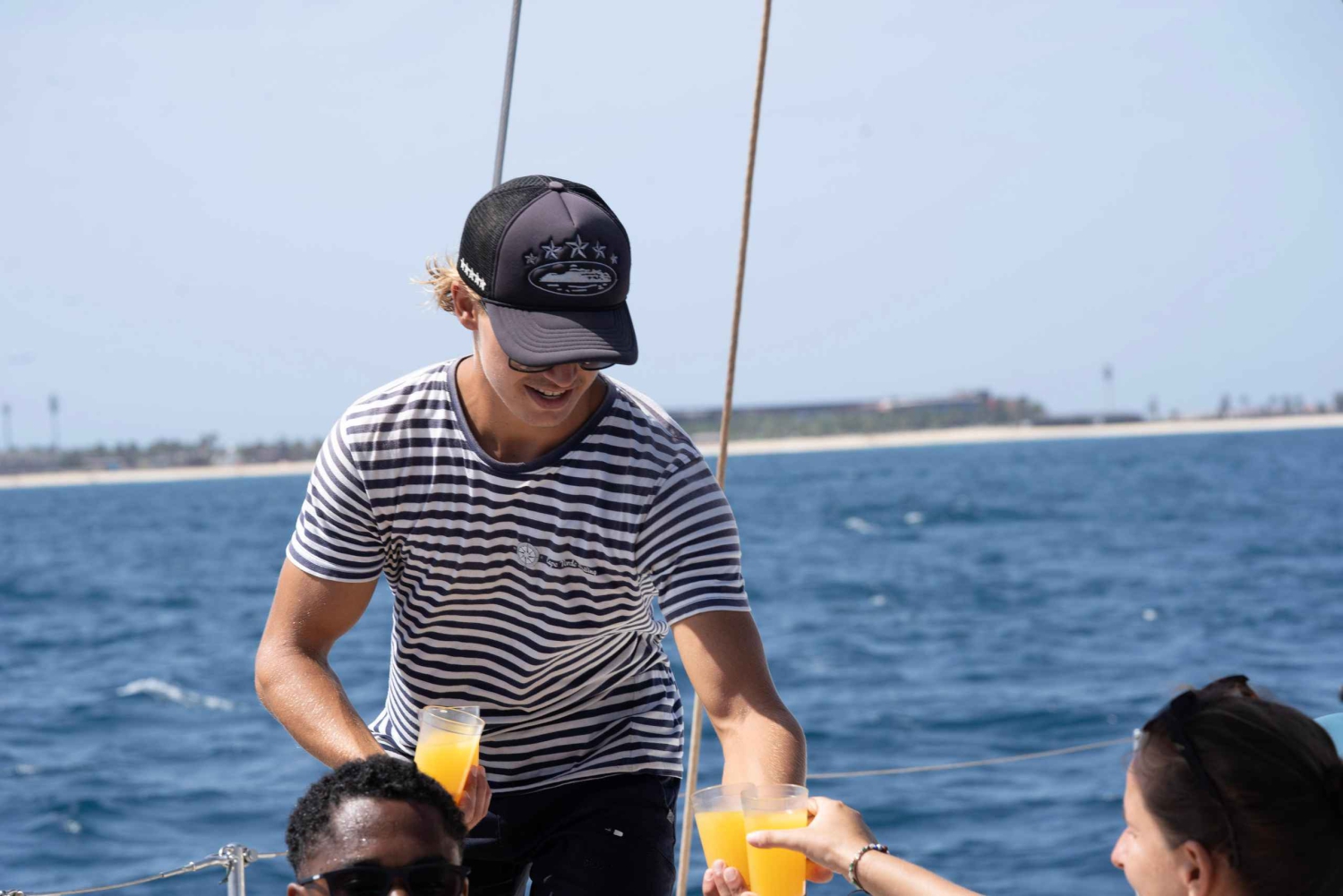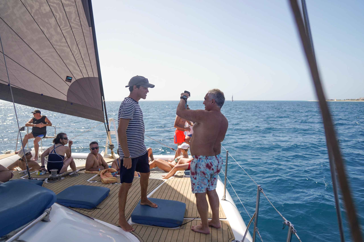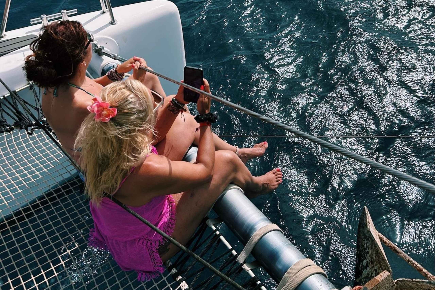 - Попробуйте легкие закуски и освежающие напитки, подаваемые на борту катамарана.