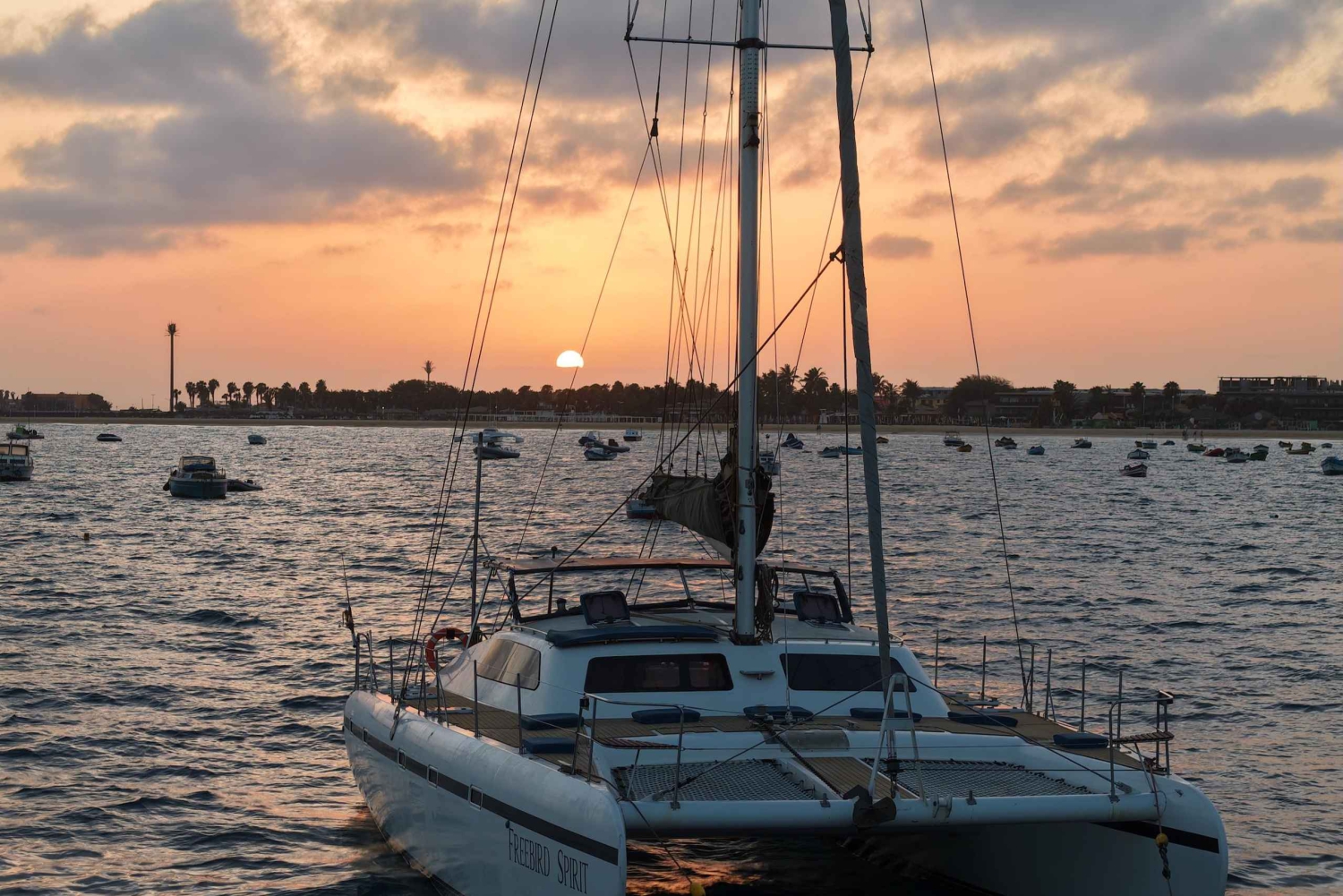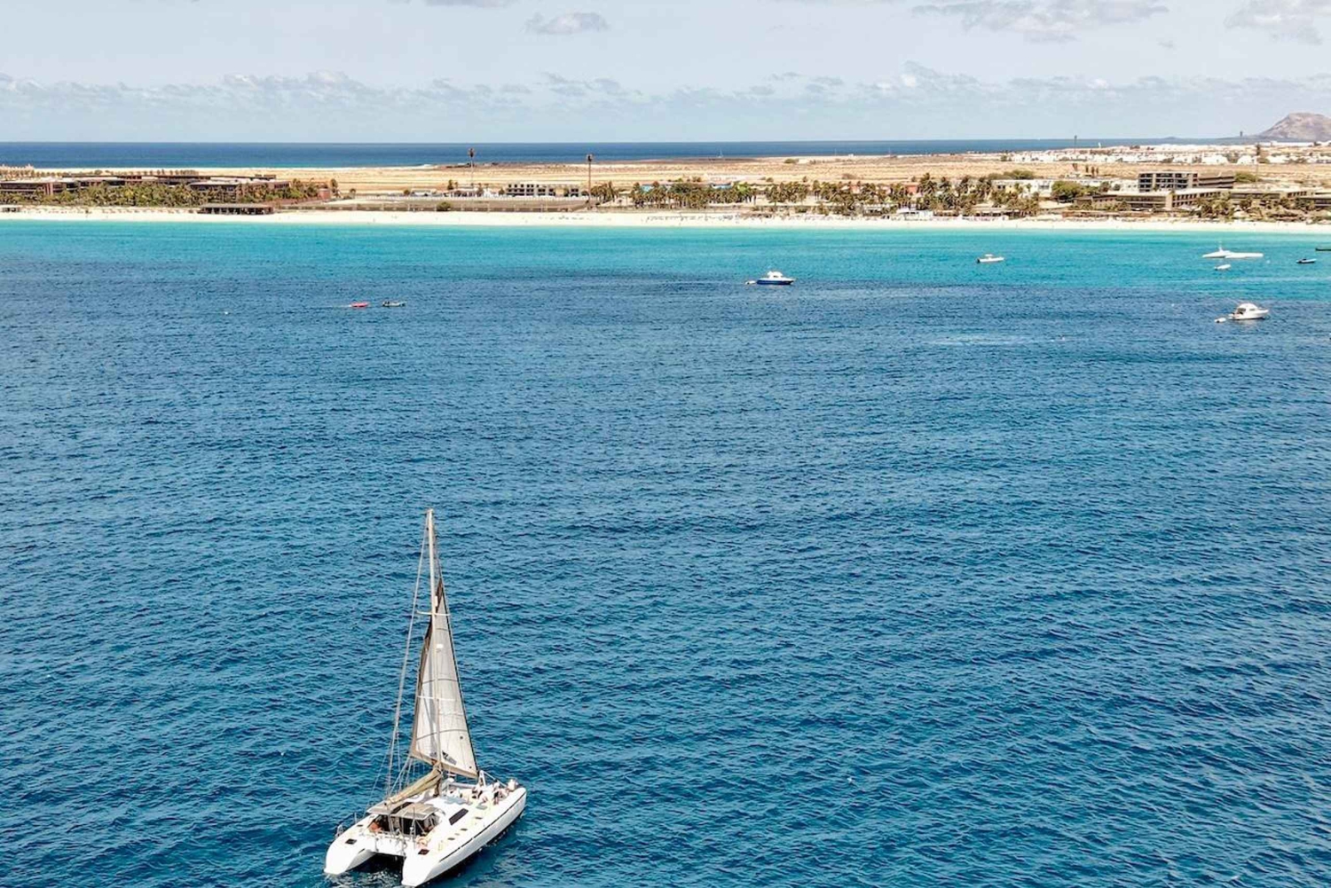 Полудневный круиз на катамаране Насладитесь красотой острова Сал во время расслабляющего и живописного круиза на катамаране на полдня. Плывите вдоль береговой линии, любуйтесь потрясающими видами океана и наслаждайтесь спокойными водами. Идеально подходящая для пар, семей или небольших групп, эта поездка предлагает спокойную альтернативу лодкам для вечеринок, делая упор на комфорт и спокойствие. Наша дружелюбная команда позаботится о том, чтобы о Вас хорошо позаботились, подавая на борт легкие закуски и напитки. В конце поездки Вы сможете остановиться для плавания или снорклинга в кристально чистых водах, что сделает Ваши впечатления еще более незабываемыми. Присоединяйтесь к нам для этого уникального океанского приключения и создайте воспоминания, которые останутся на всю жизнь!Includes